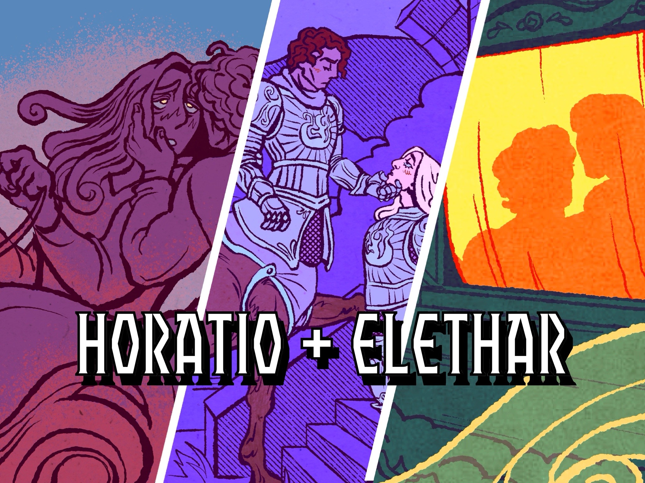 A bundle of all three of my erotic Horatio + Elethar comics, for a dollar off each. (18+)